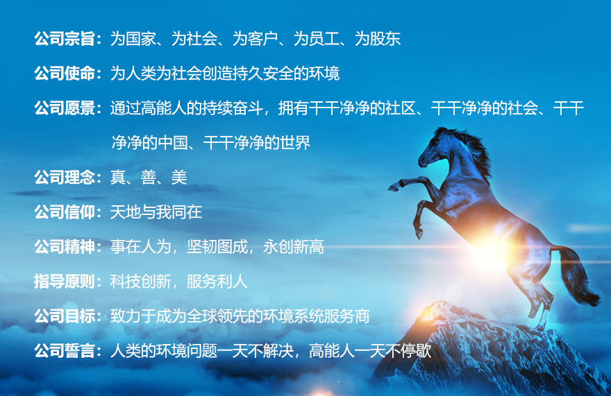 公司牢牢樹立“科技保障安全”的經營理念,秉承“科技創新、服務利人”的指導原則,專注專行,致力于打造國內領先、國際一流的環境技術企業,全面踐行“為人類為社會創造持久安全的環境”的企業使命。