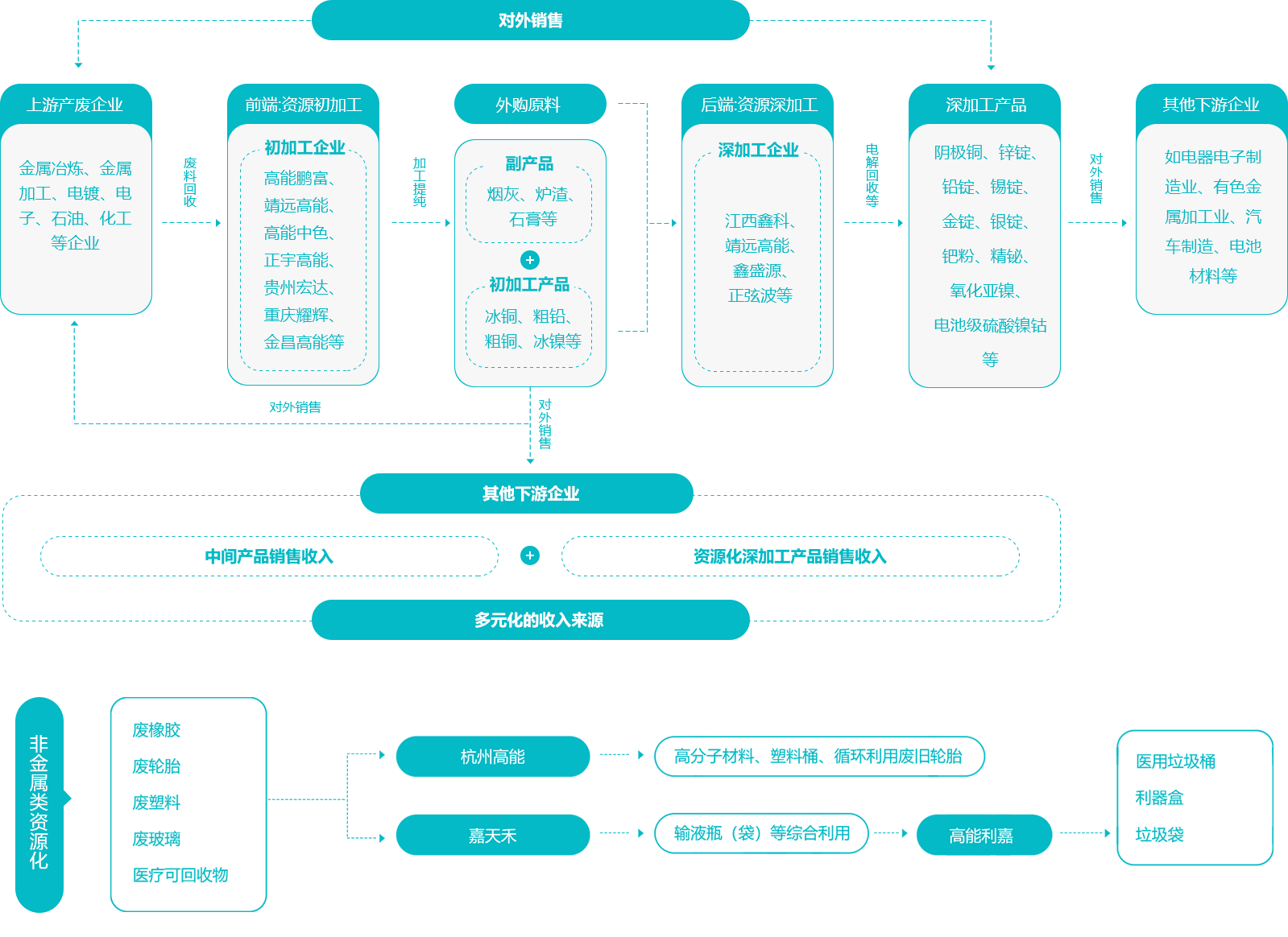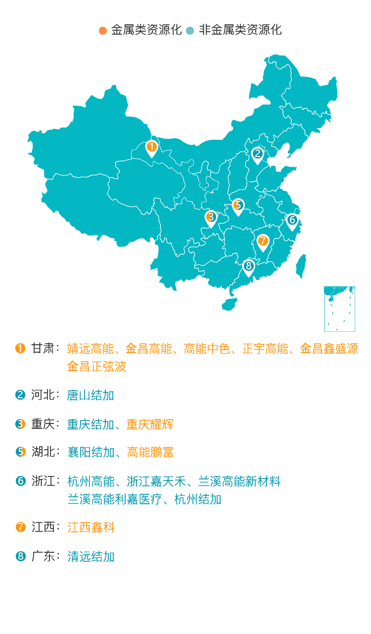 公司固廢危廢資源化業務覆蓋甘肅、湖北、貴州、重慶、浙江、江西等地,產業鏈已拓展至深加工產品及新能源材料領域,形成再生資源循環全產業鏈,處于行業頭部地位,成功開辟了企業高質量發展的第二曲線。