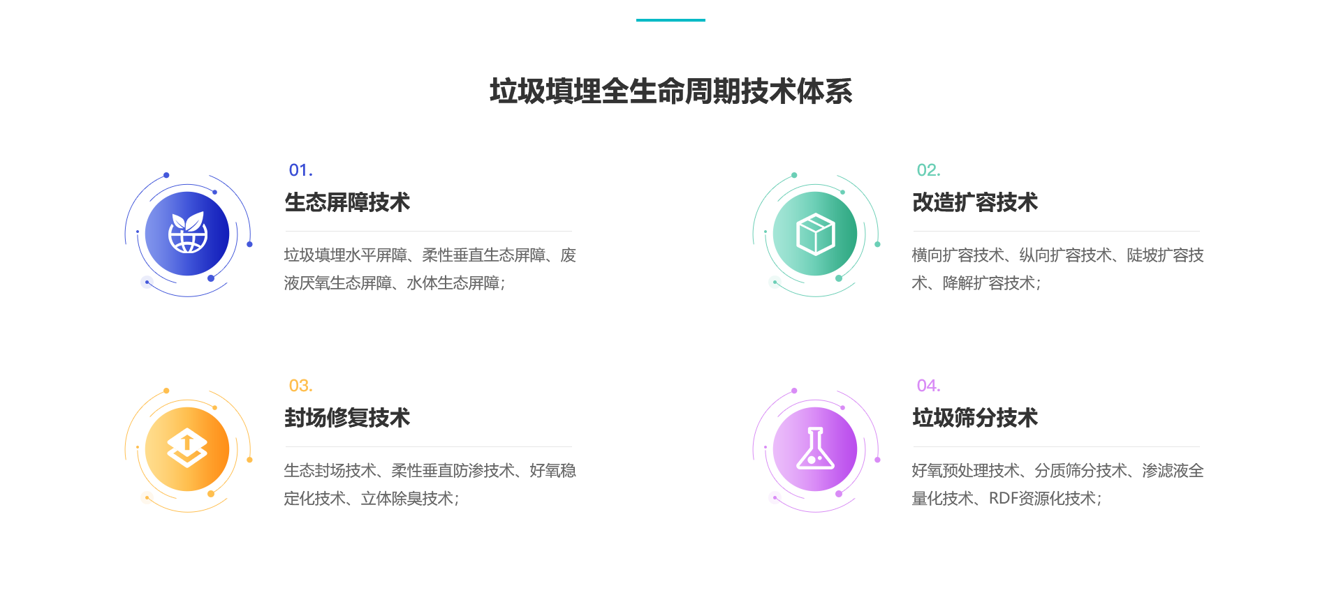 高能環境作為我國衛生填埋領域先驅,提供生活垃圾填埋場的新建、改建和擴建服務,以柔性垂直生態屏障系統為核心形成填埋場封場和綠色修復等解決方案,新建衛生填埋場200余座、生態修復50余座填埋場,累計消納城市垃圾2.2億方。針對存量垃圾,應用垃圾好氧穩定化與分質篩分資源化等技術體系,釋放垃圾填埋場的資源與土地新動能。