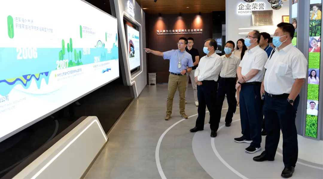 中國(guó)石化集團(tuán)化工事業(yè)部副總經(jīng)理侯國(guó)民、邱宏斌一行參觀高能環(huán)境展廳
