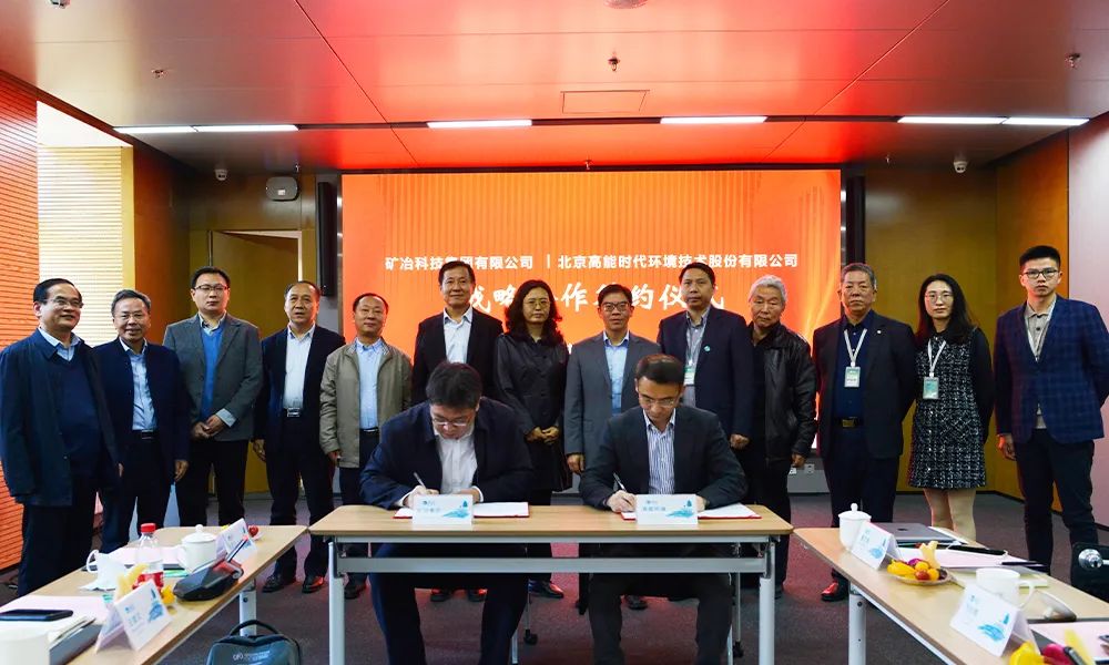 11月15日,高能環境與礦冶科技集團有限公司(以下簡稱“礦冶集團”)在北京簽訂戰略合作框架協議。礦冶集團黨委委員、副總經理戰凱,高能環境總裁凌錦明共同見證簽約儀式;礦冶集團科技發展部主任劉全民,高能環境董事會秘書、副總裁張炯代表雙方簽署戰略合作協議。
