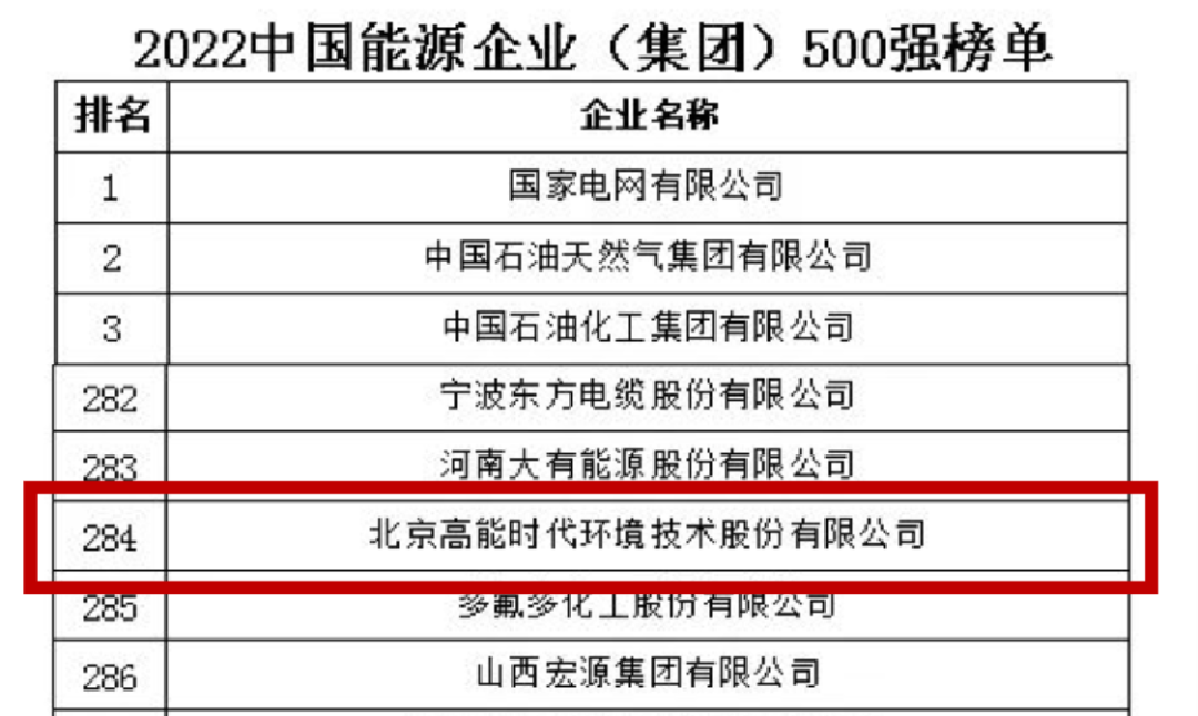 近日,由中國能源報社與中國能源經濟研究院共同研究評價的“2022中國能源企業(集團)500強”榜單重磅發布。高能環境憑借穩健的經營業績以及深度踐行節能環保理念連續兩屆榮登“中國能源企業(集團)500強”榜單。
