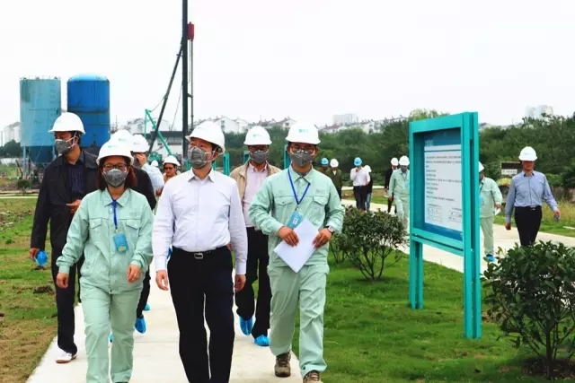 10月24日,蘇州市常務副市長周偉強帶領市財政局、國土局、規劃局、環保局、土地儲備中心等相關部門負責人蒞臨蘇州溶劑廠原址北區污染場地治理項目現場視察指導工作,市政府副秘書長沈志棟陪同考察。高能環境修復公司總經理魏麗帶領蘇化項目部全體員工進行接待。