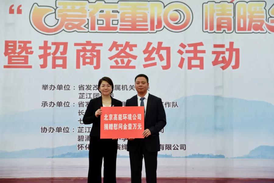 高能環境代表鄧靈燕女士向七甲坪村捐贈慰問金