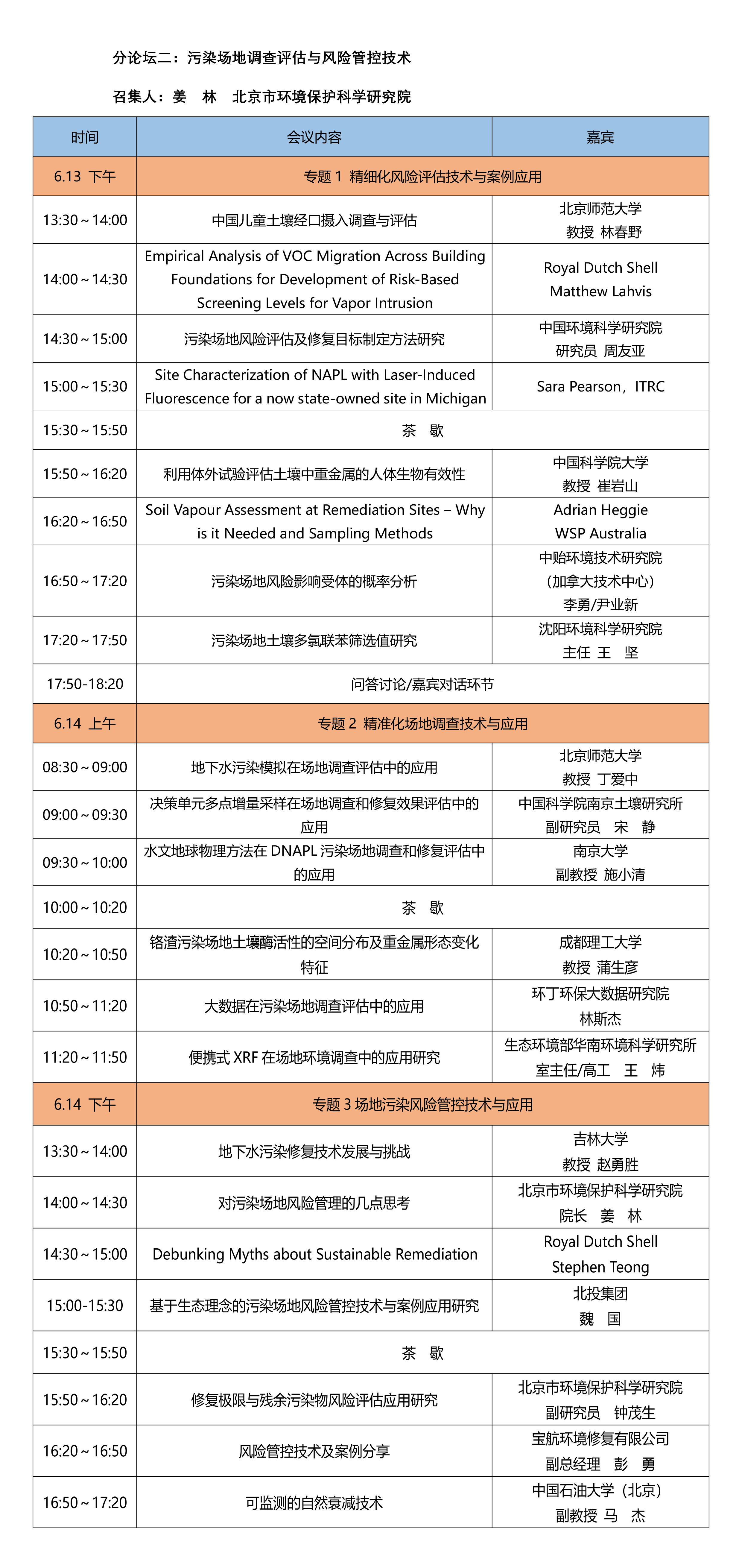 協辦單位:(按照分論壇順序排列) 生態環境部環境規劃院 、北京市環境保護科學研究院 、生態環境部南京環境科學研究所 、中國環境科學研究院 、中國科學院南京土壤研究所 、浙江大學