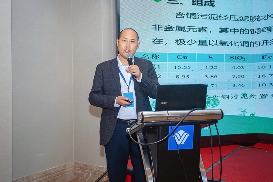 霍成立就《含銅污泥的火法處理與煙氣超低排放探討》與現場嘉賓交流技術經驗