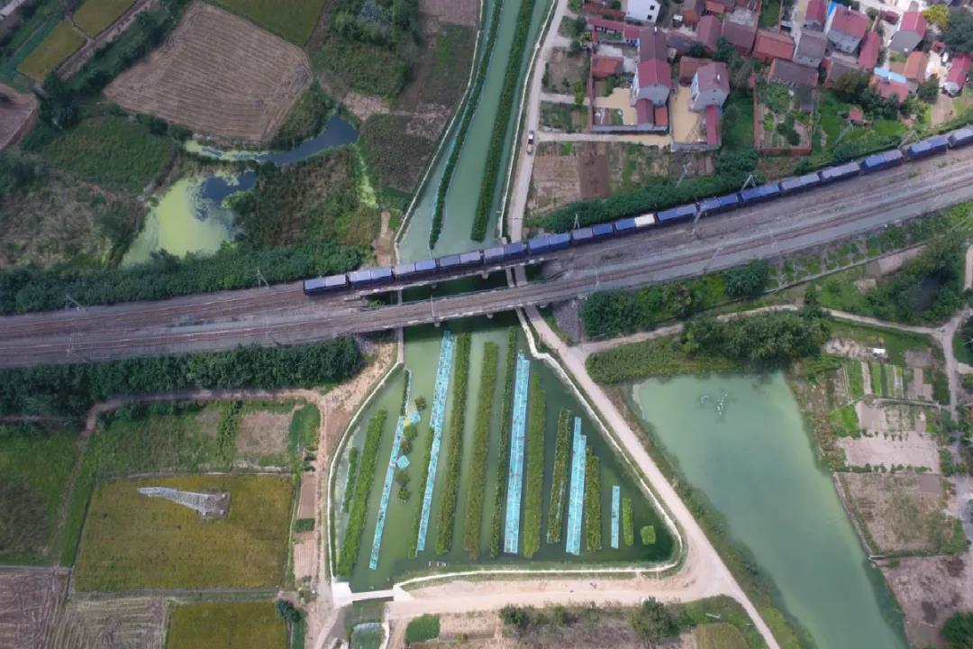 鐘祥市南泉河重金屬污染治理工程生態浮島航拍圖