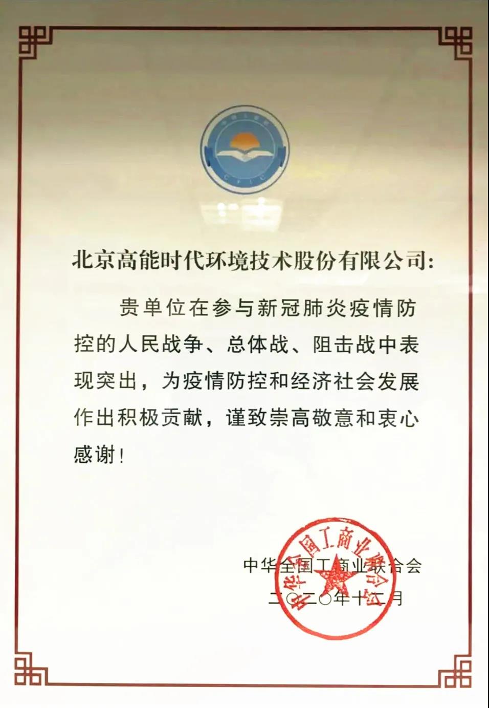 近日,全國(guó)工商聯(lián)開(kāi)展“抗擊新冠肺炎疫情先進(jìn)民營(yíng)企業(yè)”評(píng)選活動(dòng),環(huán)境商會(huì)執(zhí)行會(huì)長(zhǎng)單位高能環(huán)境在參與新冠肺炎疫情防控戰(zhàn)役中,充分發(fā)揮自身優(yōu)勢(shì),積極馳援,彰顯擔(dān)當(dāng),表現(xiàn)突出,被全國(guó)工商聯(lián)授予“抗擊新冠肺炎疫情先進(jìn)民營(yíng)企業(yè)”榮譽(yù)稱號(hào)。